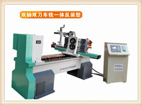车铣一体机,双铣型,分电机双铣和主轴双铣两种,电机双铣适合加工切削面积大的产品,如四面扭方,六面立柱,八面立柱,反瓜纹,麻花等 ,特制刀具不劈不裂,表面光滑,没有刀纹,加工速度可以根据木料调整。这款机型分为双轴单刀双铣型和双轴双刀双铣型 。最大加工直径在300mm之内。双轴同时可以制作最大直径160mm之内的圆柱